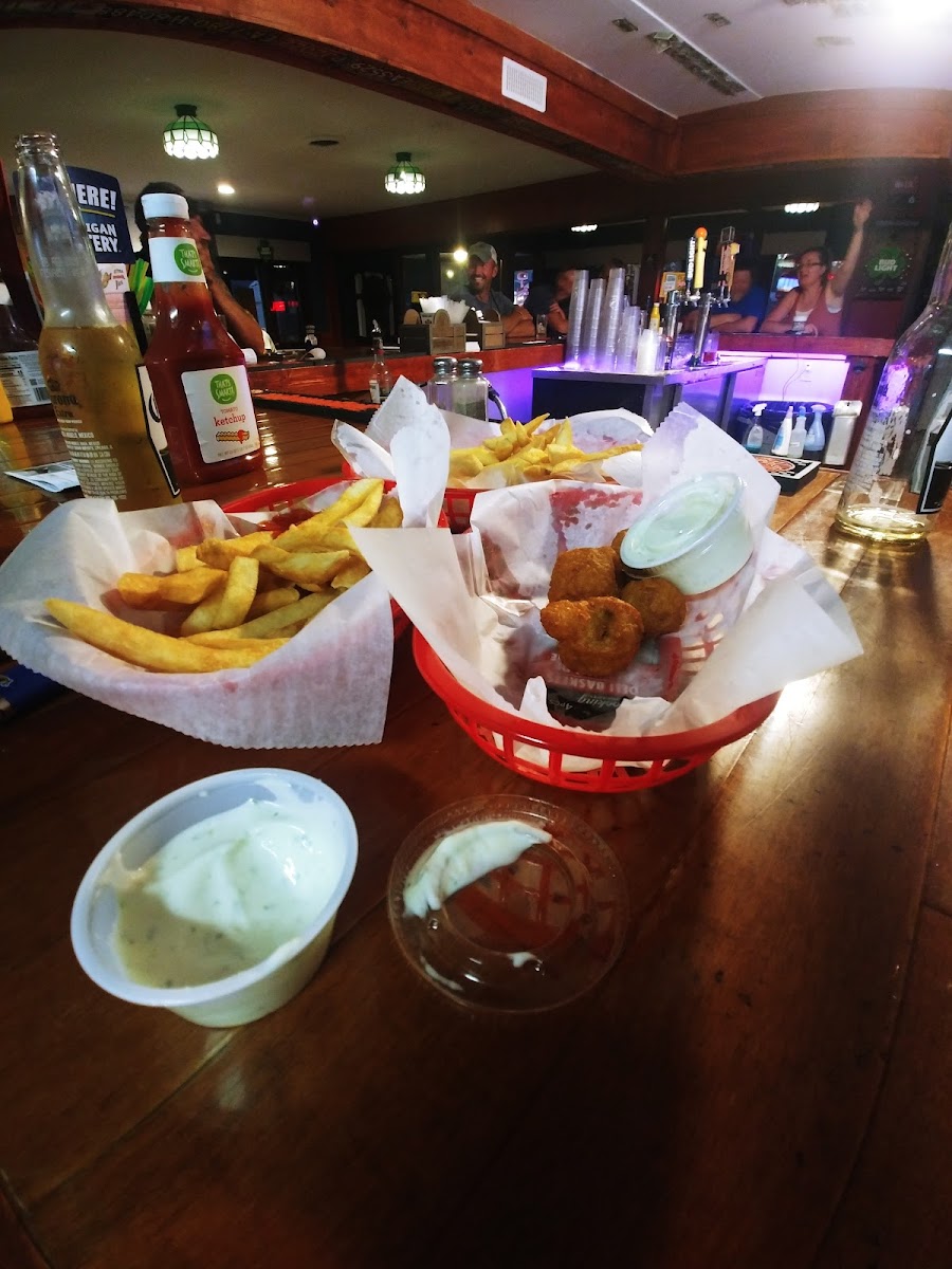 This is a small bar with good food. The service was stellar! The dinner was good. We had beer battered Perch that came with crinkle cut fries and coleslaw. The fries were nothing to rave about. The slaw was very good. The Perch was lightly crispy, deep fried. All said, this was good.