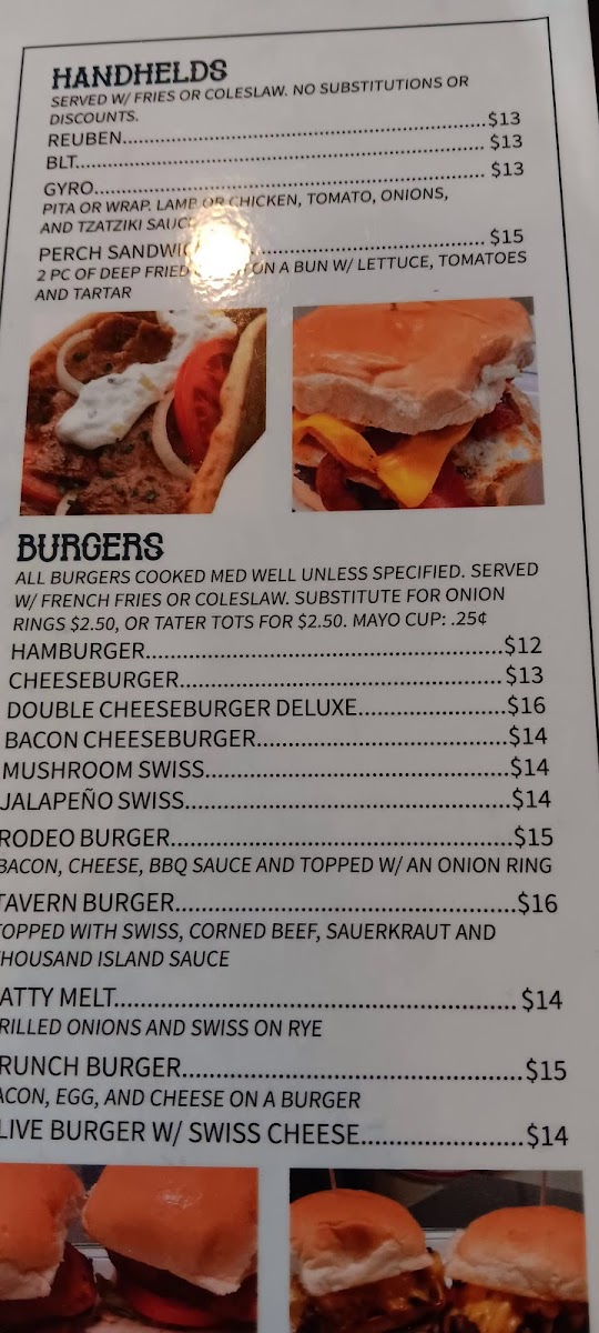 This menu fits perfectly with the tavern’s welcoming atmosphere, making it easy to settle in for an afternoon of casual lunching or a laid-back evening out. Whether you’re stopping by for a cold beer and a round of crab rangoon or sitting down to a cod dinner served with red potatoes and coleslaw, each dish is designed to complement the easygoing, friendly vibe of the space.